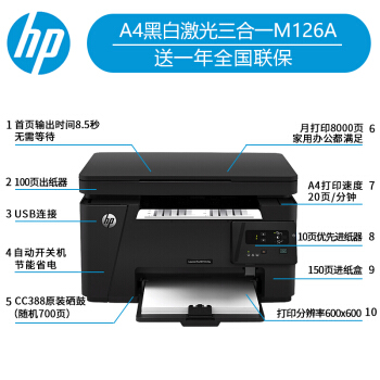 • 惠普(HP)1126a黑白激光打印机一体机复印扫描家用办公 M126a(打印复印扫描+USB连接)