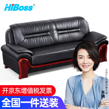 HiBoss办公沙发办公室会客接待洽谈沙发现代中式商务皮沙发三人位