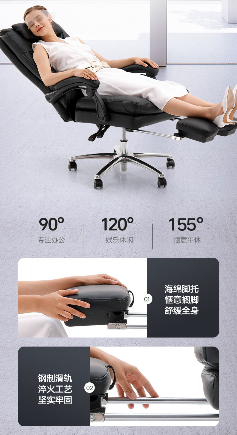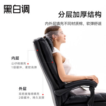 黑白调(Hbada)老板椅 办公椅真头层牛皮椅 电脑椅家用 人体工学椅子沙发可躺转椅 黑色112BGJ 巨匠
